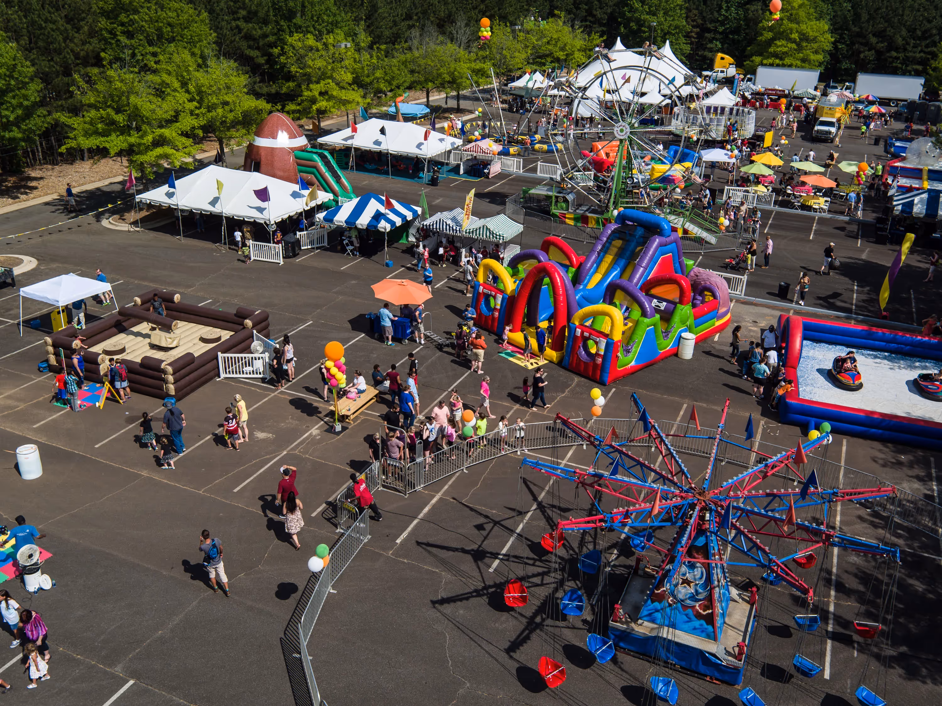 To celebrate Adtran’s landmark 30th Anniversary, we produced a massive Family Day in Huntsville, Alabama, for a crowd of over 3,000 guests. This wasn't just a corporate gathering; it was a full-scale logistical feat that transformed the company’s grounds into a premier entertainment destination. Our production team managed the installation of custom-built attractions, including a massive professional-grade zipline that served as the event's focal point.