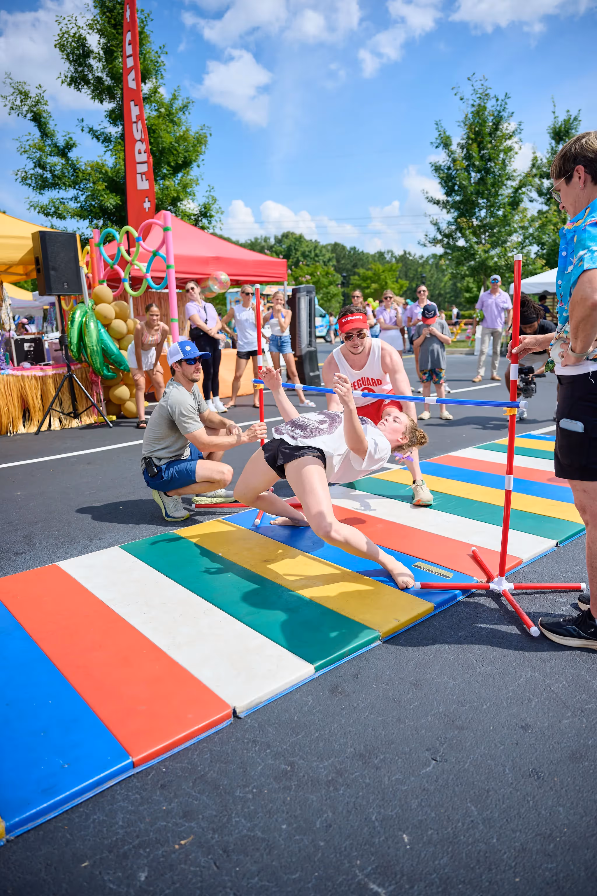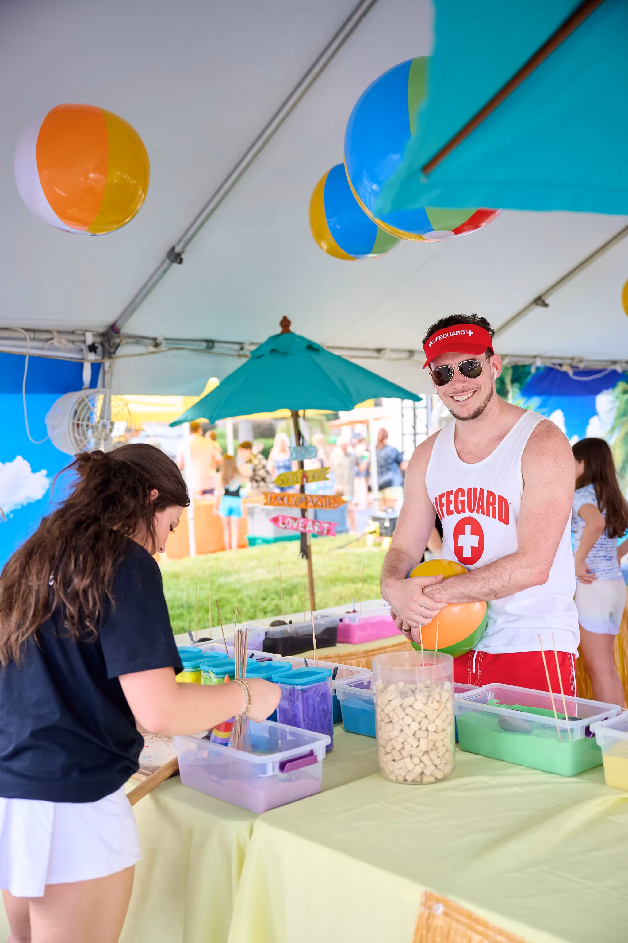 To keep the energy high and the theme consistent, we provided a diverse roster of specialized entertainers, including a professional mermaid, stilt-walkers, a beach-themed clown, and even lifeguards to manage the various activity zones. Our logistics team created a layout that allowed for seamless flow between the gourmet catering stations, a dedicated zone for toddlers, and a high-impact attraction area for older kids and adults. From the initial concept to the high-energy production on game day, this themed family day was a masterclass in creative transformation and full-service event operations.