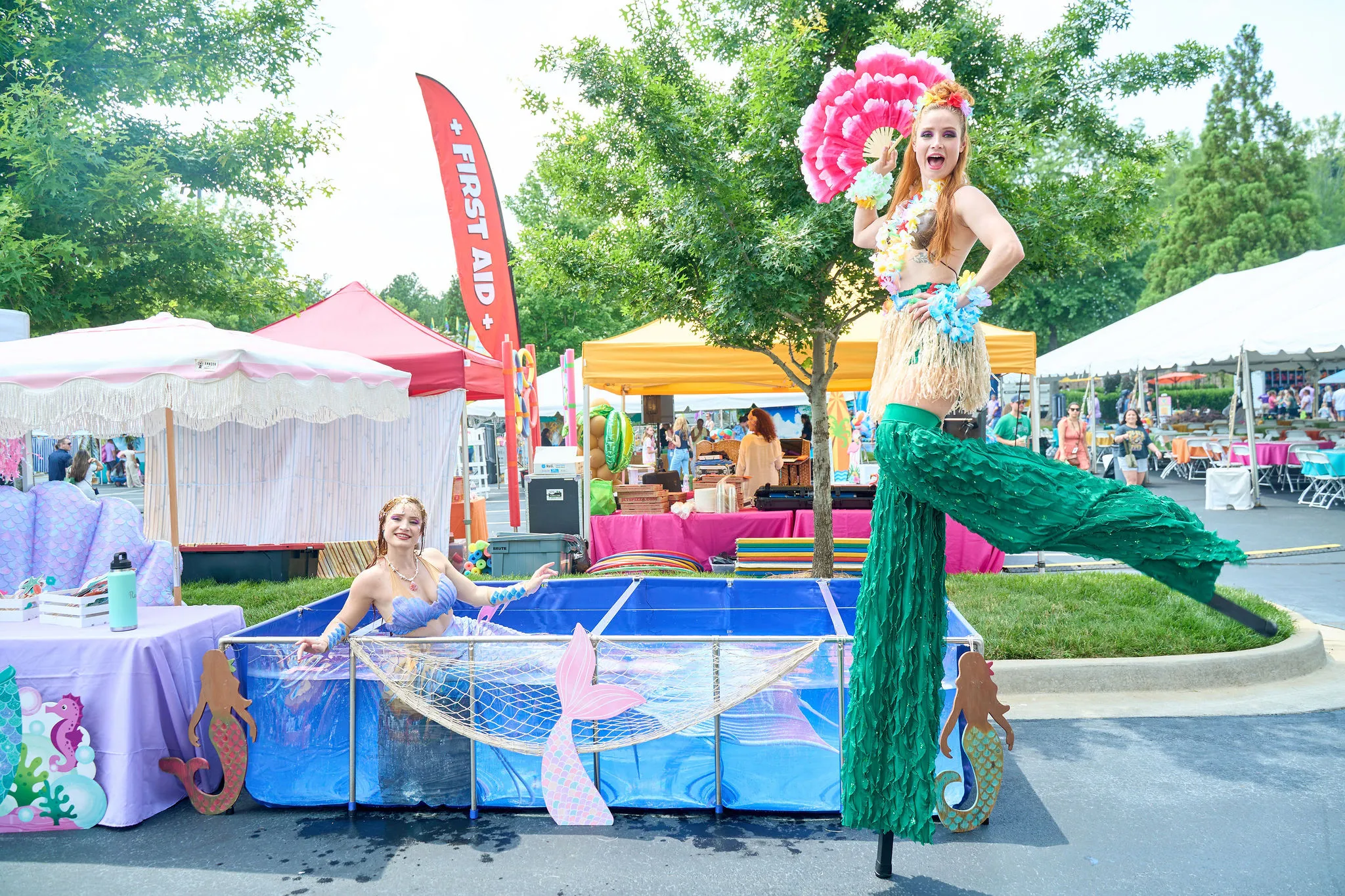Parking lot? More like beachfront! We brought the ultimate Family Fun Day to life with beach vibes, inflatables, carnival games, limbo, and decor. Entertainment was flowing — a mermaid, stiltwalkers, a beach clown, and even a lifeguard kept the energy high across zones for food, little kids, and big attractions!